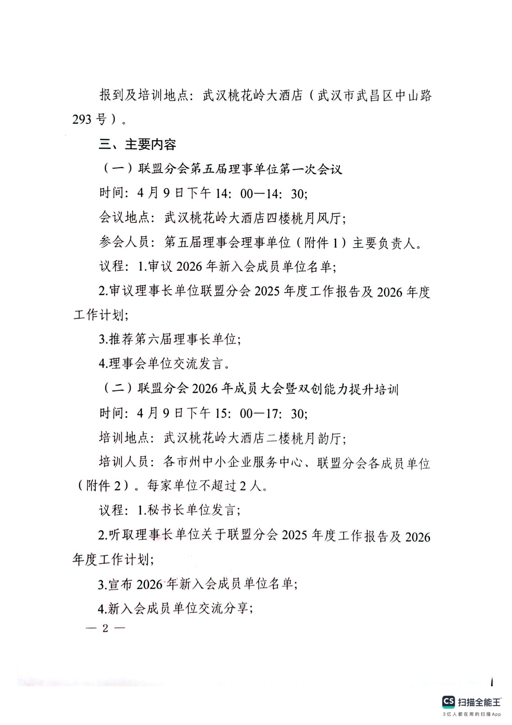 关于召开湖北省中小企业服务联盟创业创新分会2026年成员大会暨双创能力提升培训的通知